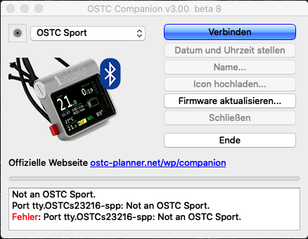 when connecting my latest generation OSTC Sport via Bluetooth with MacOS and OSTC Companion the "Companion" connects via Bluetooth, but reports the error "Not an OSTC Sport". This consequently means that OSTC Campanion can no longer be used for hwOS updates.