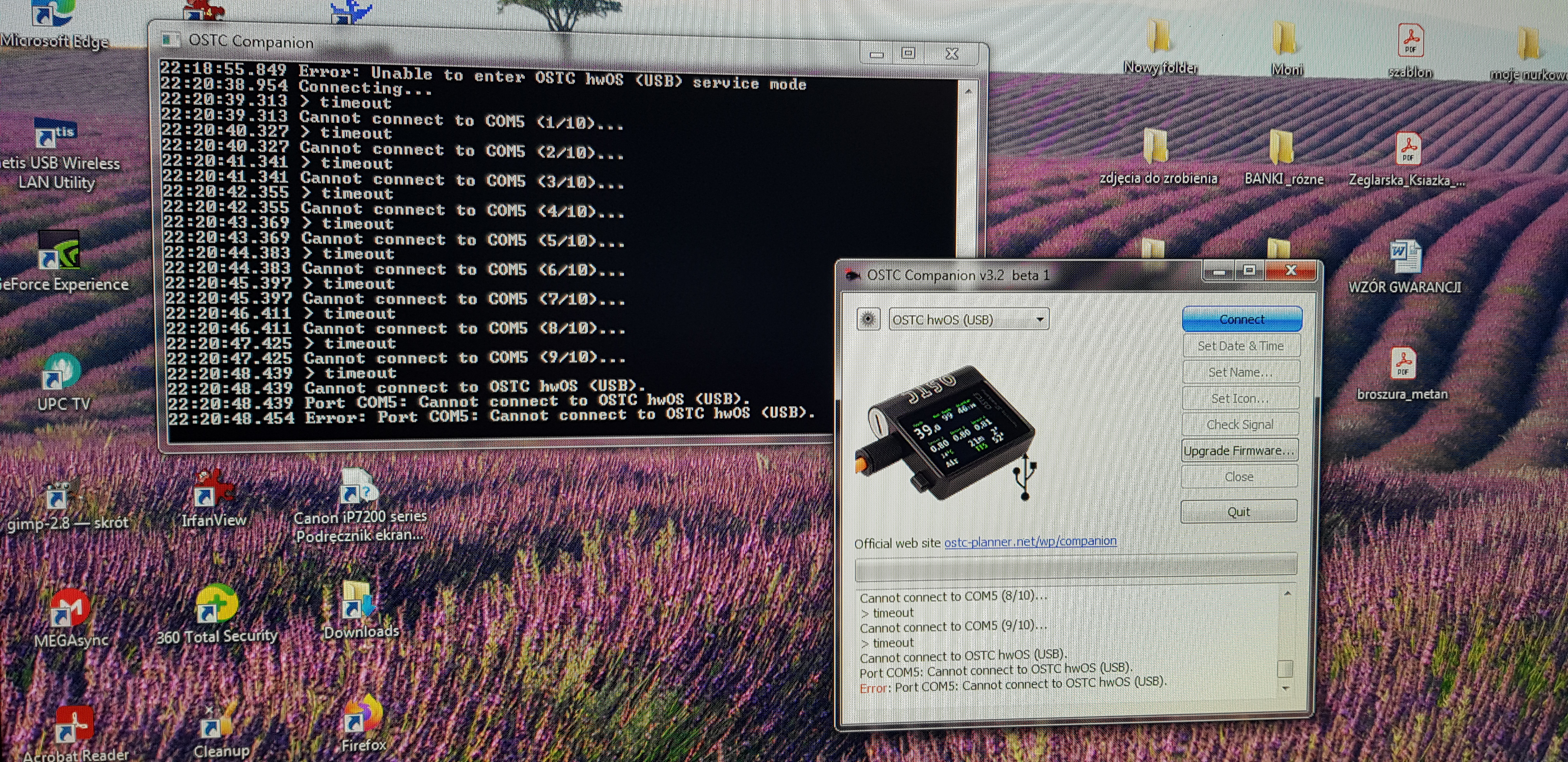 Marcomet : are you sure your computer is connected to COM5 and not to another COM port ? Have a look to the Windows peripheral panel.