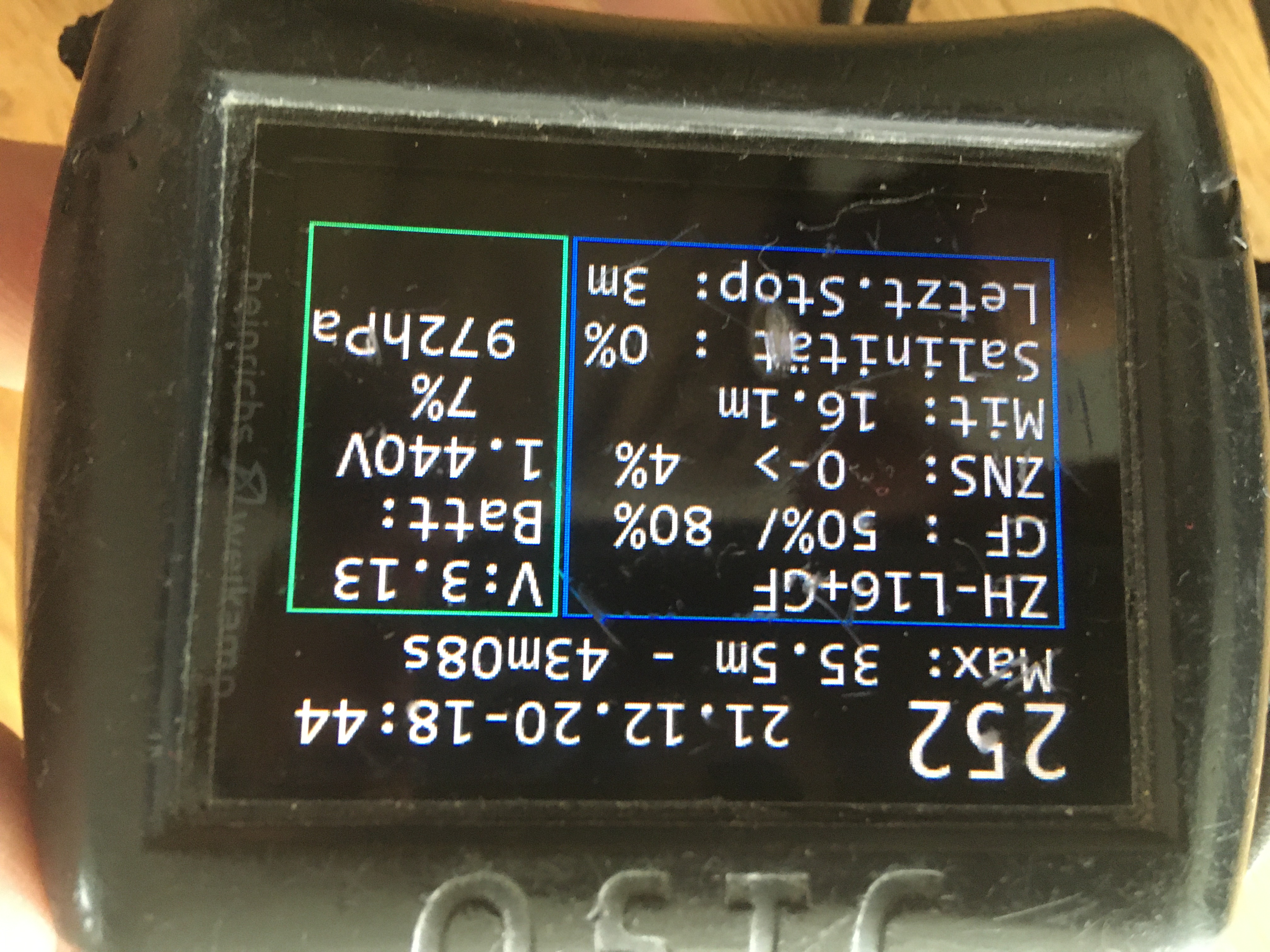 Hatte zu Beginn des letzten TG einen unerklärbaren Spannungsabfall (siehe Attachments). Zwischen den letzten TG hat weder ein Ladevorgang stattgefunden, noch wurde ein Update durchgeführt oder an den Einstellungen etwas verändert. Habe den OSTC seit dem letzten TG nun immer wieder für lange Zeit geladen. Auch habe ich mittels Magnet Reboots durchgeführt. Der Ladestand und die Spannung verändern sich aber seither nicht zum Positiven. Die Leuchtdiode des Ladepads zeigt jeweils rot/blau leuchtend den Ladevorgang an. Auch wird der OSTC, wie beim Ladevorgang üblich, warm.